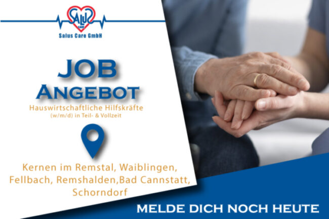 Kernen im Remstal, Waiblingen, Fellbach, Remshalden,Bad Cannstatt, SchorndorfEinsatzortVOLL-/ TEILZEITAnstellungsverhältnisAB SOFORTEintrittsdatumWir suchen Pflege- und Hauswirtschaftliche Hilfskräfte (m/w/d) Quereinseiger willkommen Deine Aufgaben Pflegerische und Hauswirtschaftliche Tätigkeiten. Wir bieten… Persönliche Entwicklungsmöglichkeiten Förderung durch interne und externe Fort-und Weiterbildungen Attraktive und zuverlässige Dienstplangestaltung Einen sicheren Arbeitsplatz bei überdurchschnittlicher Vergütung. Du bist… Teamfähig Freude an der Arbeit mit Menschen und…